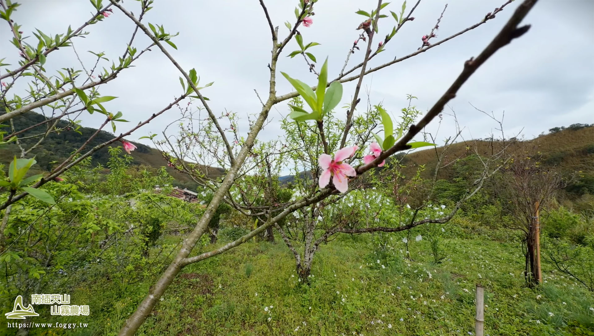三月的南插天山清晨,霧氣尚未散去,果園裡已經能看見五月桃悄悄長大。